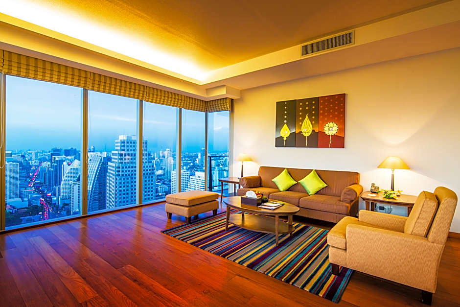 Spacious studio offers a flat-screen TV with a DVD player, a living area and a fully equipped kitchen. It features views of Bangkok City’s skyline.